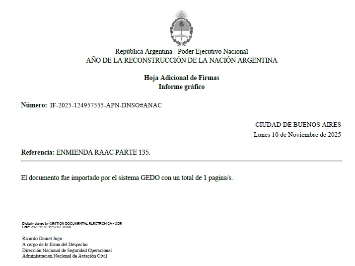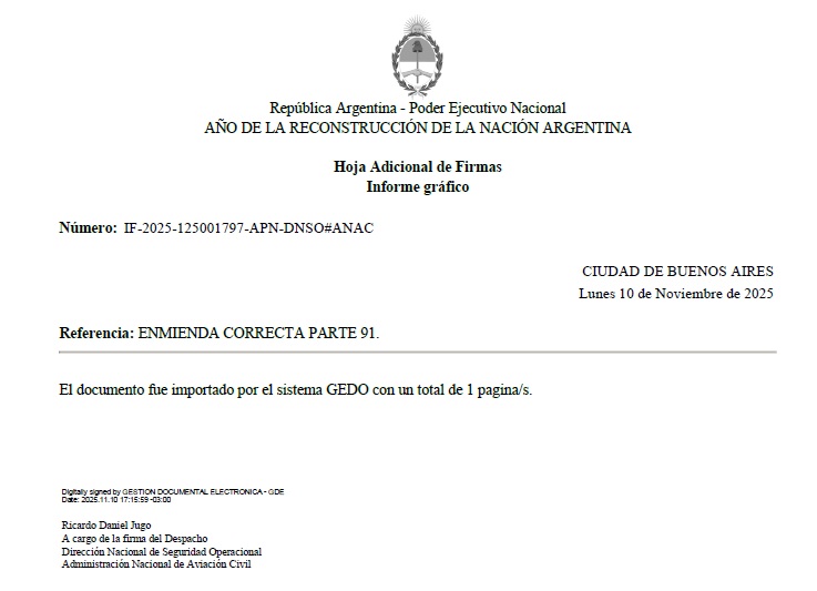 ARGENTINA a la ADMINISTRACIÓN NACIONAL DE AVIACIÓN CIVIL.