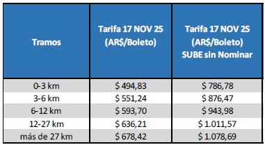 Tarifario aplicable a partir del 17 de noviembre 2025, para las líneas