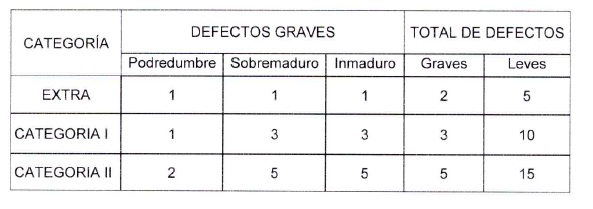 de los defectos graves es la siguiente: podredumbre, sobremaduro e