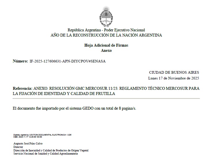 Técnico del MERCOSUR de identidad y calidad de la frutilla”, a fin de