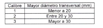 9.2.2.1 - Calibre, que puede ser el código o intervalo de diámetro correspondiente, previsto en la Tabla 1 del presente RTM.