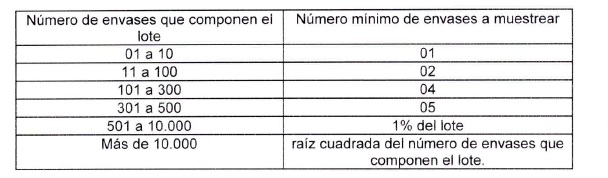 10.1.1.2 - En caso de cinco (5) o más envases, se retirarán como mínimo treinta (30) frutos de cada envase, se homogeneizarán y se formará una muestra de cien (100) frutos para análisis.