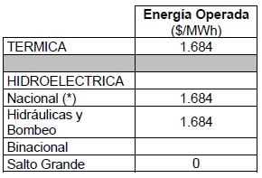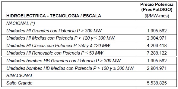 Para la generación de origen hidráulico, se reconocerá en cada hora el precio por energía generada de:
