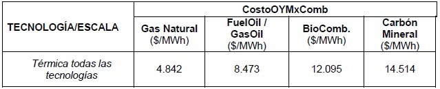 los costos variables no combustibles [CostoOYMxComb] indicados en la