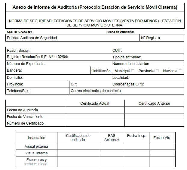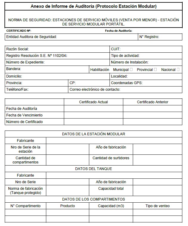 certificado "Anexo de Informe de Auditoría (Protocolo Estación