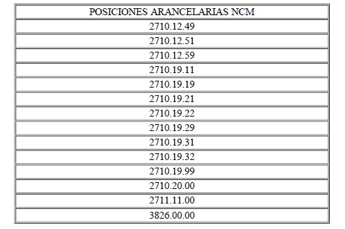 posiciones arancelarias NCM alcanzadas por dicha exigencia.