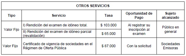 Servicios”, se actualiza el pago por rendición del examen de idoneidad,