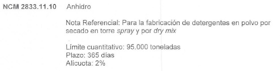 República Argentina, para el siguiente ítem arancelario con las