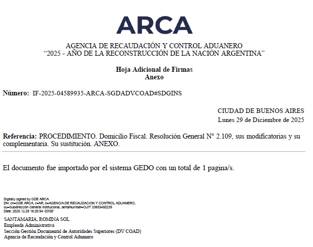 consta en el Anexo (IF-2025-04589935-ARCA-SGDADVCOAD#SDGINS) que se