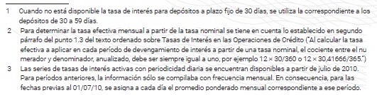 cálculo de la TIM es la tasa de interés de depósitos a plazo fijo en