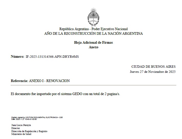 octubre de 2025 del MINISTERIO DE SALUD DE LA NACIÓN, por el Anexo I