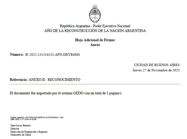 octubre de 2025 del MINISTERIO DE SALUD DE LA NACIÓN, por el Anexo II