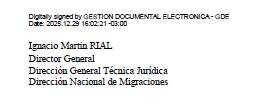 Entre la Dirección Nacional de Migraciones, representada en este acto