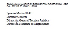 Nacional de Migraciones ha accedido a otorgarlo en base a los términos