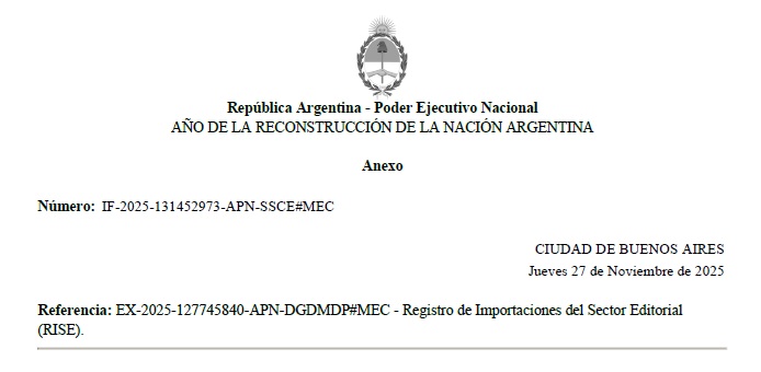 de Importaciones del Sector Editorial (RISE), a efectos del seguimiento