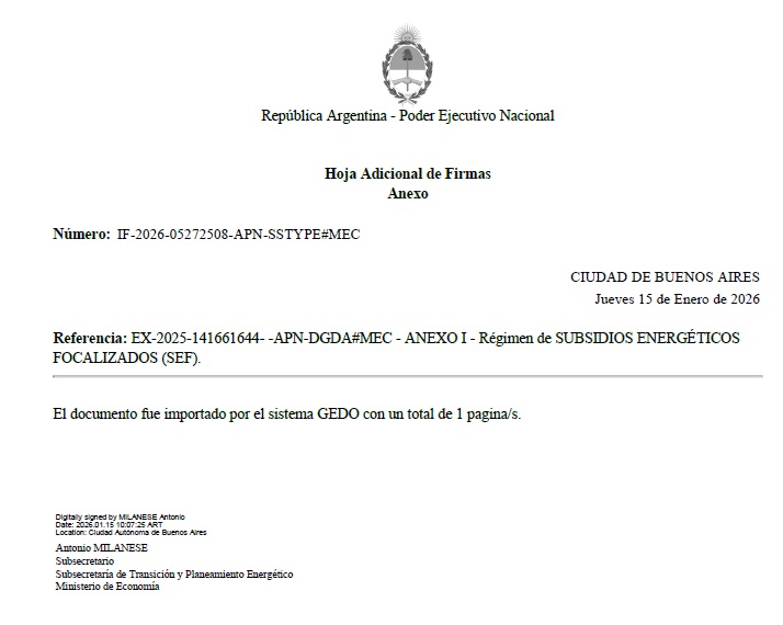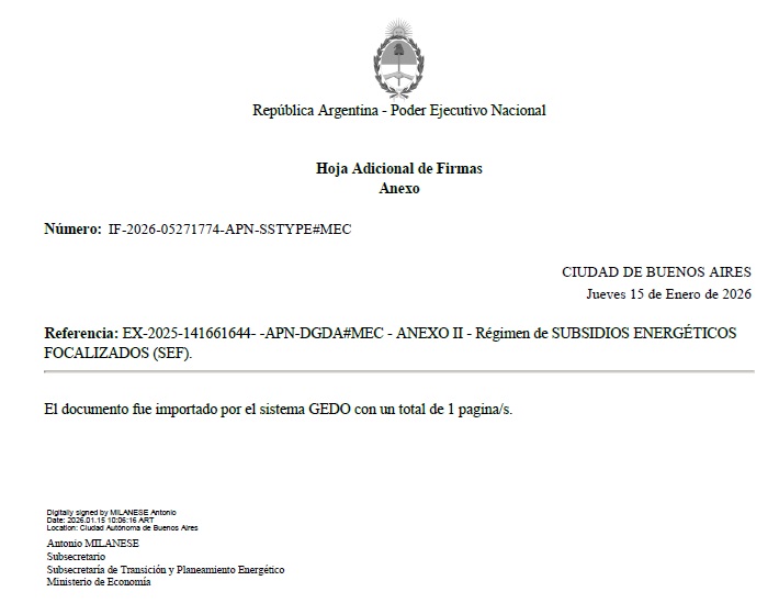 unificaron los subsidios energéticos de jurisdicción nacional,