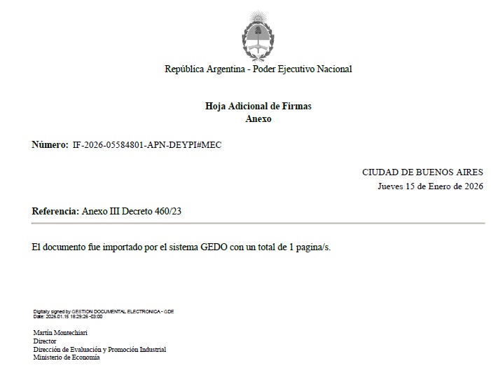 La Dirección Nacional de Gestión de Política Industrial emitirá dicha