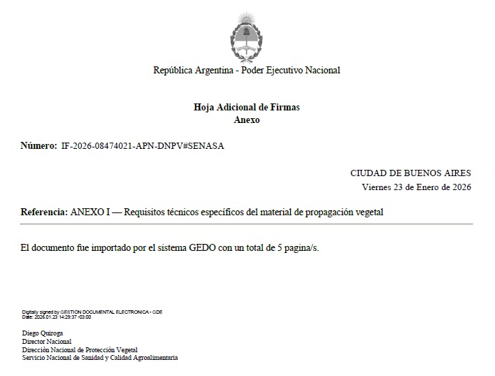 la Dirección Nacional de Protección Vegetal del SENASA a publicar mi