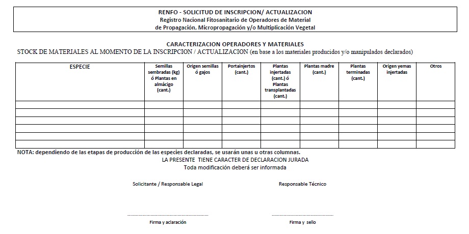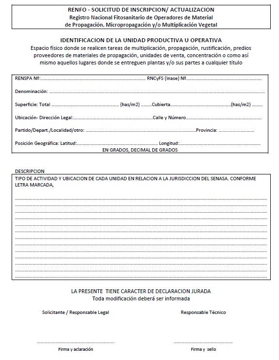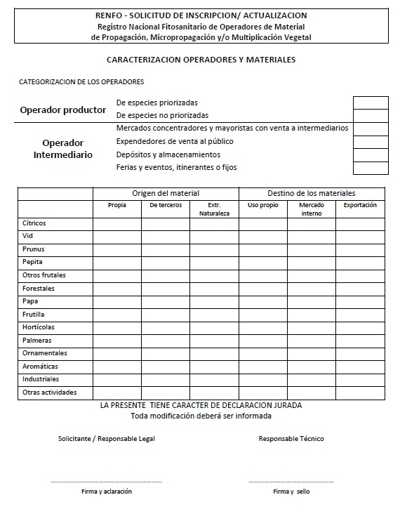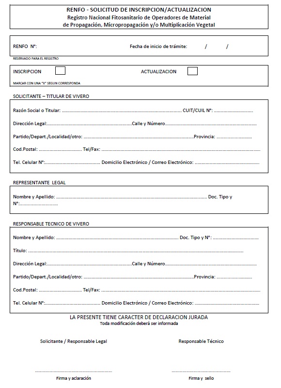 Formularios para inscripción en el Registro Nacional Fitosanitario de