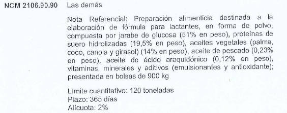 República Argentina, para el siguiente ítem arancelario con las