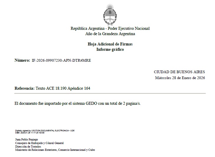N° 18 (ACE N° 18), de acuerdo a lo dispuesto en el artículo 18 del
