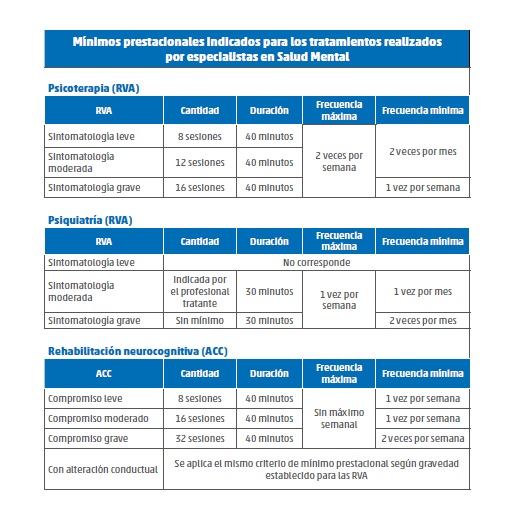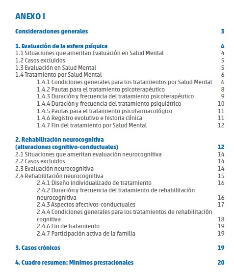 mínimo prestacional de rehabilitación neurocognitiva, acorde al nivel