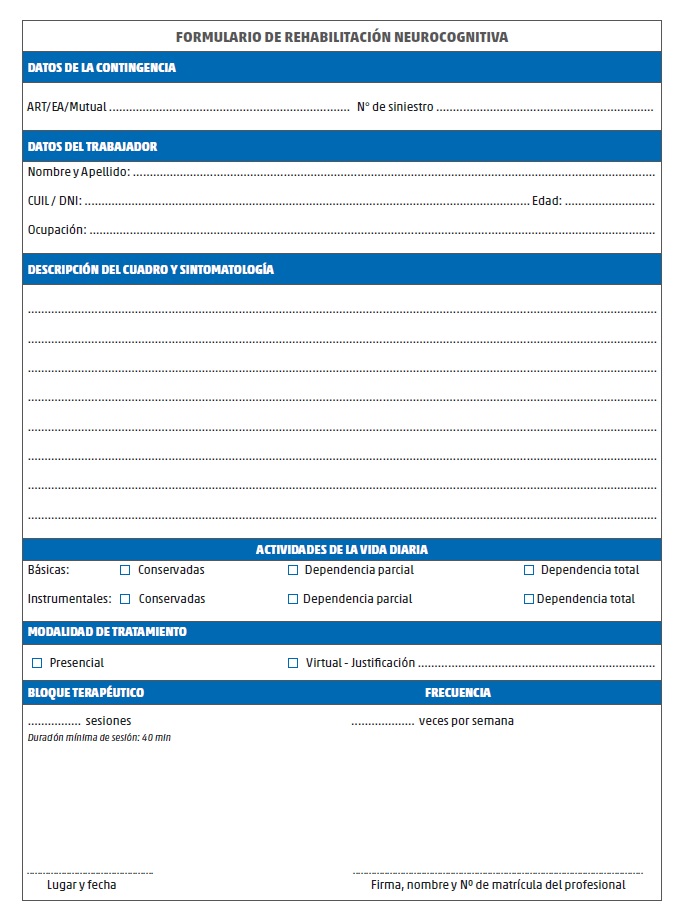 tratamientos de rehabilitación neurocognitiva, la misma podrá