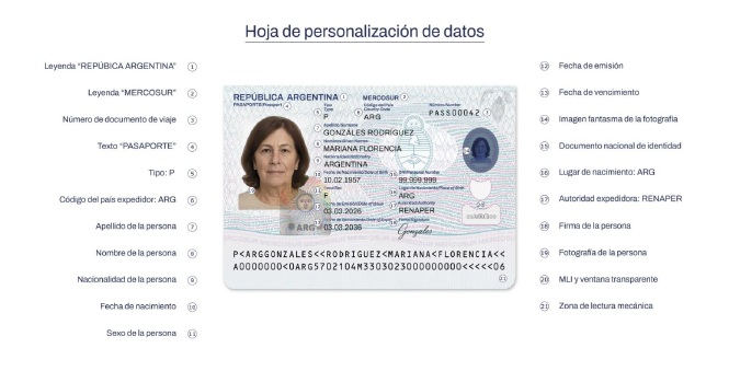Las siguientes características se aplican a la ZIV de los pasaportes de personas argentinas mayores de 14 años.
