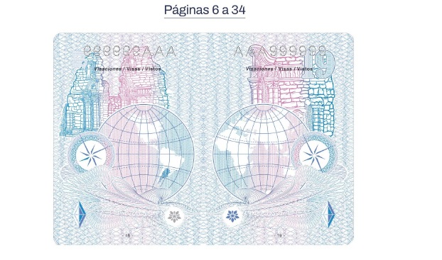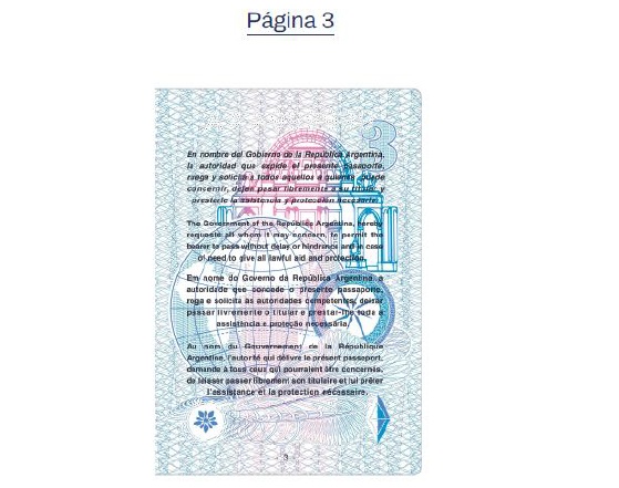 leyendas “PASAPORTE ARGENTINO” - “Este documento de 34 páginas, carece