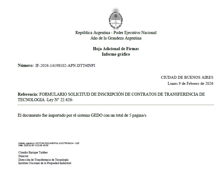 de Inscripción de Contratos de Transferencia de Tecnología -Ley N°
