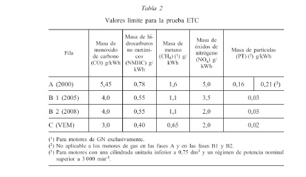 Límites de Emisión EURO V (“Fila B2 y C”) en DIRECTIVA 2005/55/CE DEL