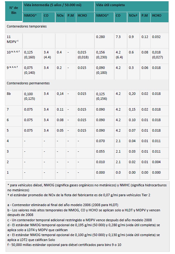 Sólo estándar Bin 5 de resumen de Tabla S04-1—Estándares de emisiones