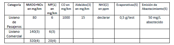 - Límites máximos de emisiones contaminantes por categoría de vehículo,
