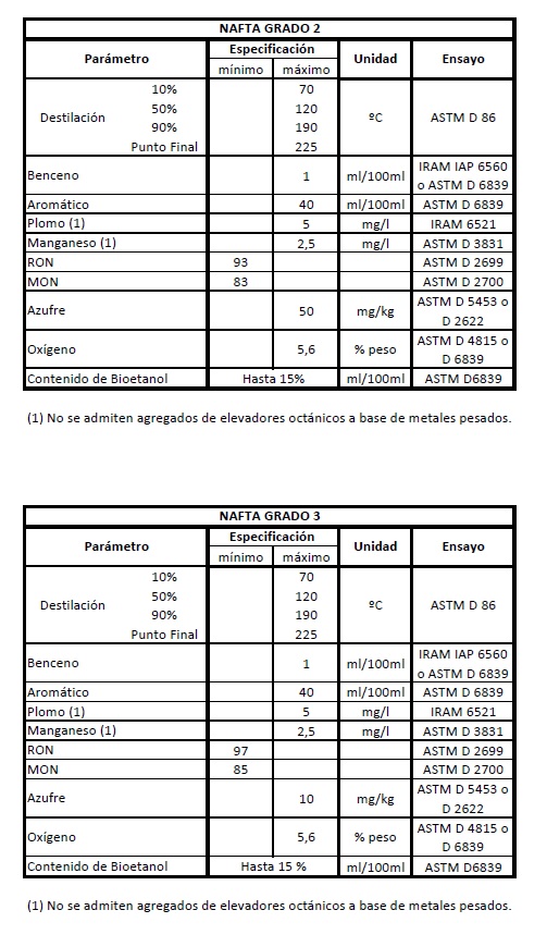 contenido de bioetanol y el oxígeno total en las naftas.