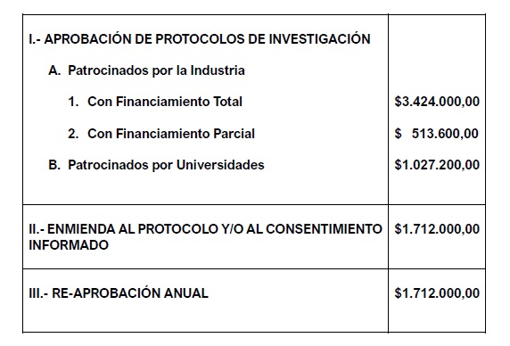 PROTOCOLOS DE INVESTIGACIÓN CLÍNICA - ARANCELES
