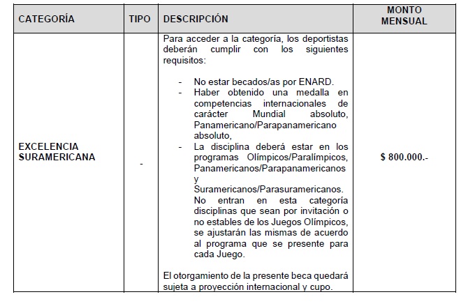 BECAS CATEGORÍA PROYECCIÓN SURAMERICANA