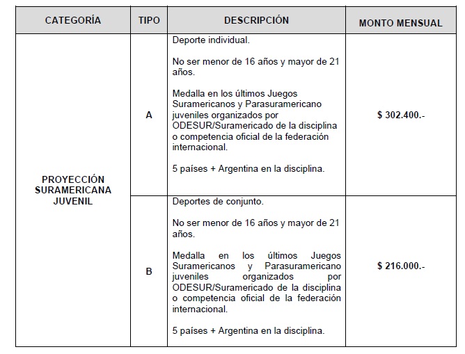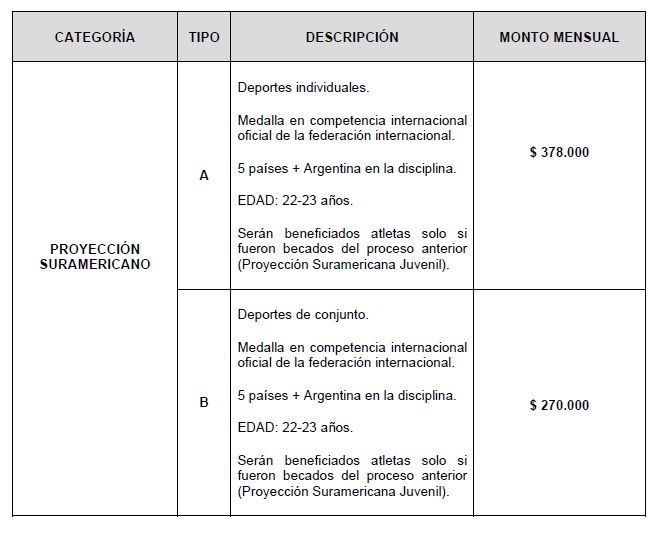 BECAS CATEGORÍA PROYECCIÓN SURAMERICANA JUVENIL