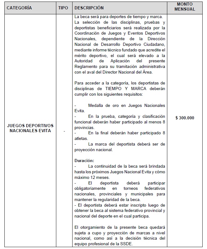 BECAS CATEGORÍA JUEGOS DEPORTIVOS NACIONALES EVITA