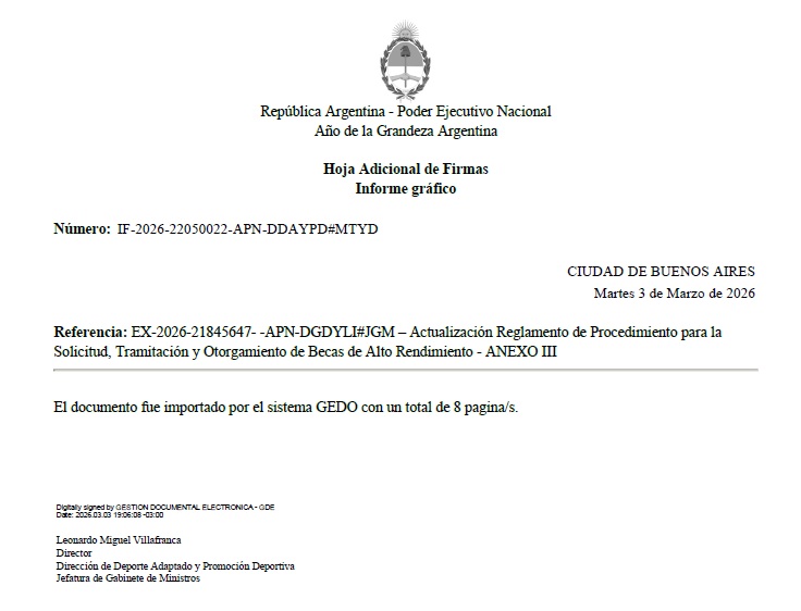 la cual comprende una nómina de Becas Deportivas para atletas de alto