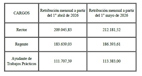 cargos de Rector, Regente y Ayudante de Trabajos Prácticos de la