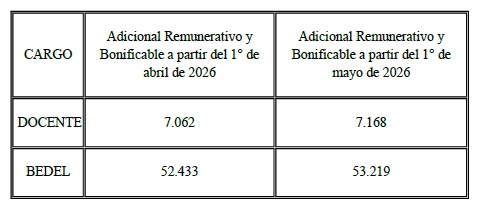 Adicionales Remunerativos y Bonificables aplicables a los cargos docentes y bedeles que se desempeñan en el