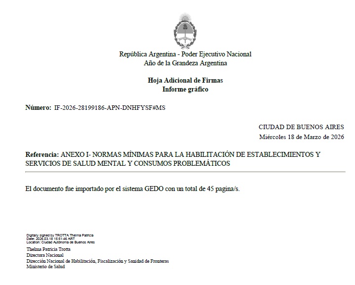 ANEXO I- NORMAS MÍNIMAS PARA HABILITACIÓN DE ESTABLECIMIENTOS Y SERVICIOS DE SALUD MENTAL Y CONSUMOS PROBLEMÁTICOS.