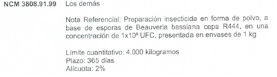 República Argentina, para el siguiente ítem arancelario con las