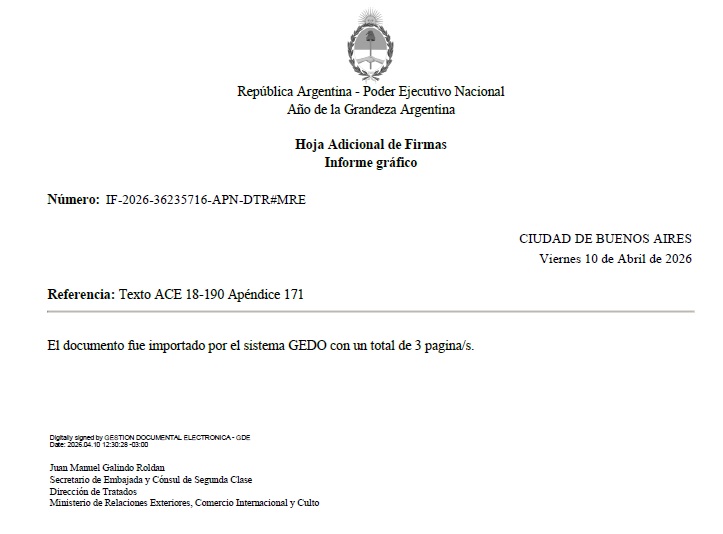 N° 18 (ACE N° 18), de acuerdo a lo dispuesto en el artículo 18 del