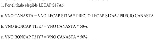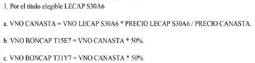 canasta compuesta por un cincuenta por ciento (50%) del BONCAP T15E7, y