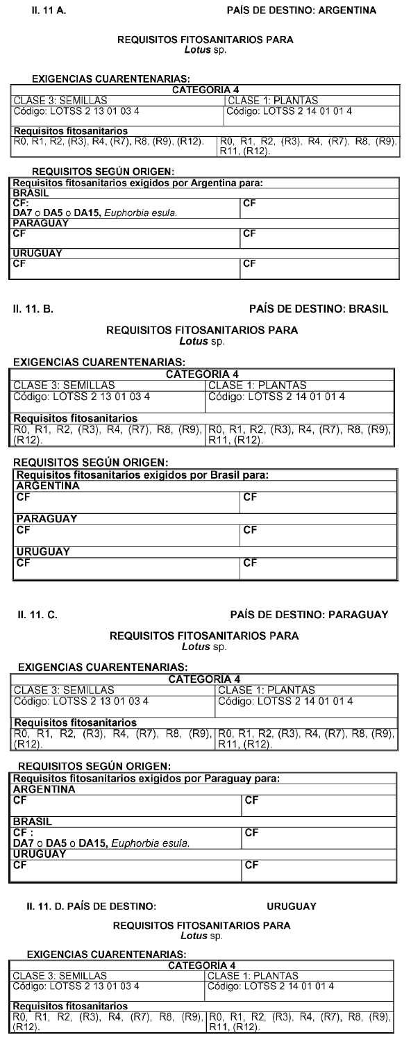 II. REQUISITOS FITOSANITARIOS Lotus sp. , SEGUN PAIS DE DESTINO Y DE ORIGEN PARA LOS ESTADOS PARTES DEL MERCOSUR.