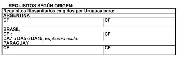 II – Requisitos Fitosanitarios para Lotus sp., según País de Destino y de Origen, para los Estados Partes del MERCOSUR.